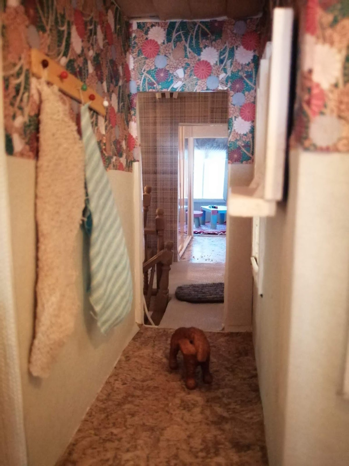 | Seinän takana on sauna ja pesuhuone. Illalla valaistus luo tunnelmaa! |